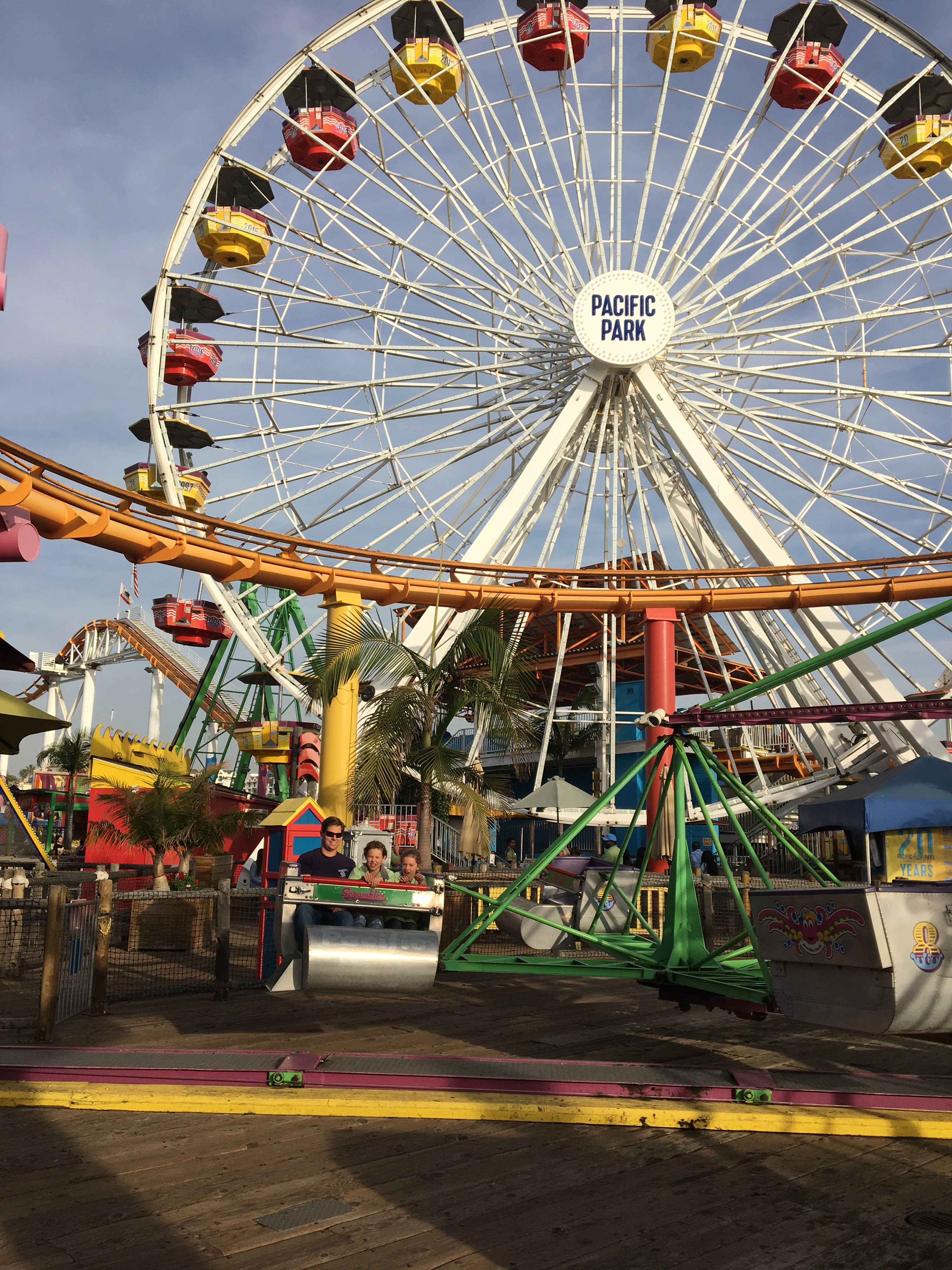 Thursday, the girls and I ran through Knott’s Berry Farm in the morning while Chris was flying back from a business trip. Then in the late afternoon, all four of us drove out to Santa Monica to explore Pacific Park.